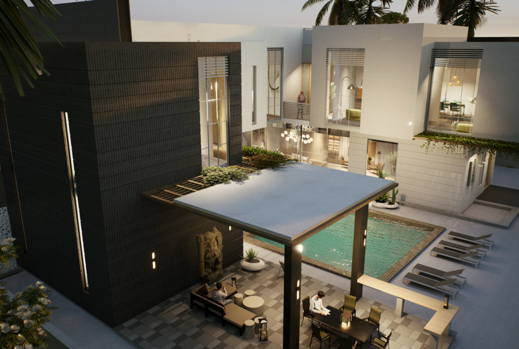 At the heart of the residence lies a private courtyard oasis, anchored by a pool that becomes the home’s visual and social centerpiece. Full-height glazing and double-height volumes bring natural light deep into the interior, creating a seamless indoor–outdoor connection and a calm sense of openness